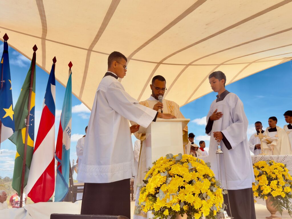A Santa Missa foi presidida pelo Arcebispo Metropolitano e concelebrada pelos Padres: Alessandro Mendonça Nonato, SDV (Pároco), Luís Jonas Carneiro de Oliveira, SDV (Vigário), Irineu Moreira Meira (Pároco da Paróquia Nossa Senhora das Vitória – Catedral Metropolitana), além do Pe. Joselito Oliveira Cruz (Administrador Paroquial da Paróquia Nossa Senhora do Perpétuo Socorro, em Iguaí). Serviu a liturgia o Diácono Transitório, Juliano Neres de Campos (Assistente Eclesiástico da Pastoral da Comunicação).