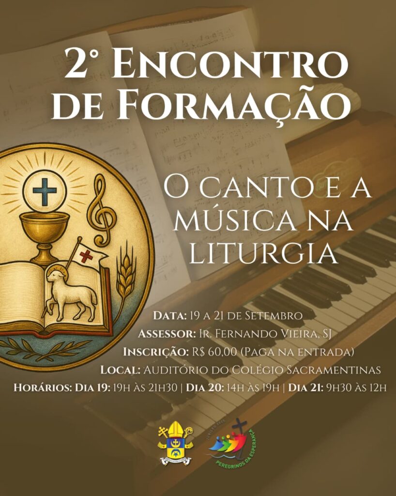 Com o tema “O canto e a música na liturgia”, esta formação é uma oportunidade de aprofundamento e aprimoramento para todos que dedicam seus dons ao serviço da Igreja. Será um momento oportuno para fortalecer a missão e contribuir para uma liturgia ainda mais bela. Participe!