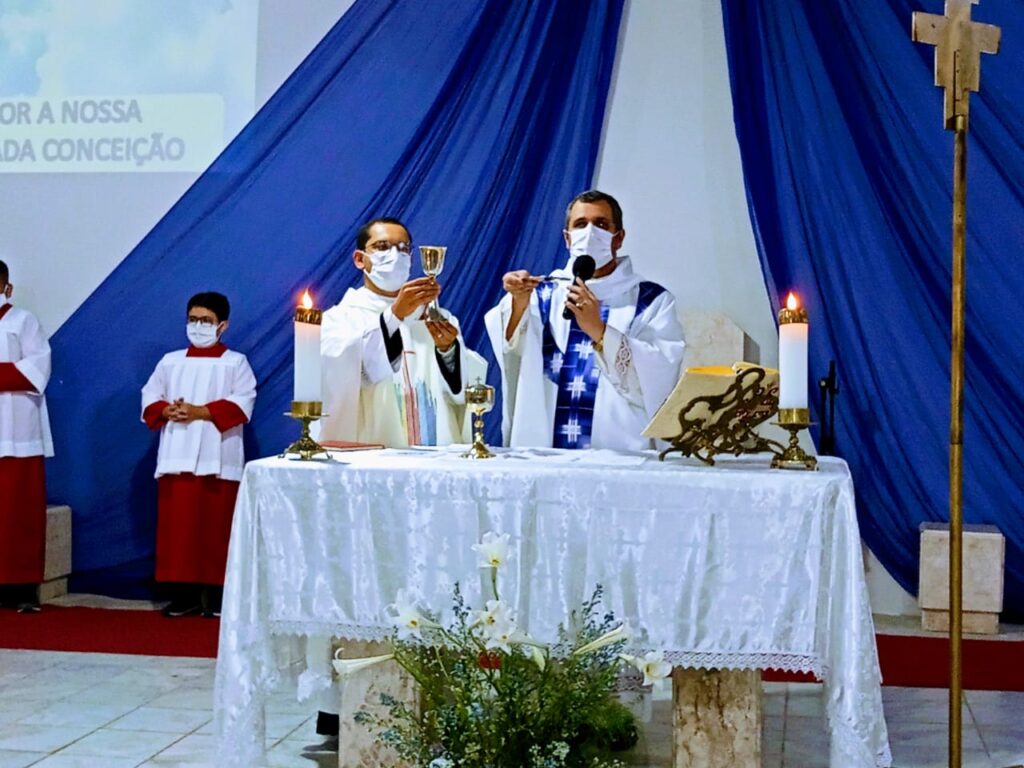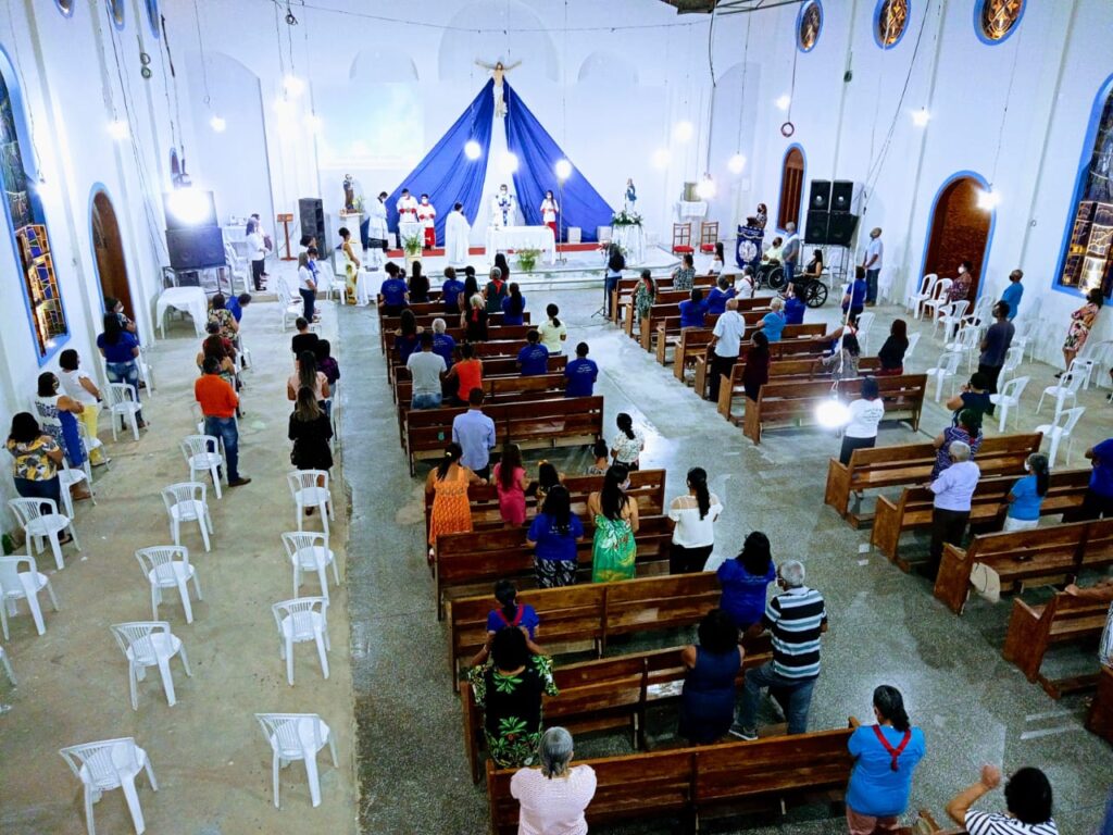 Tendo por temática: Maria, a Rainha de toda a criação, os presentes foram convidados a refletir e contemplar, a realeza de Nossa Senhora, pelo Pe. Alexandre Márcio, Celebrante da noite, o qual teve por concelebrante, o Pe. Nailson Gonçalves.