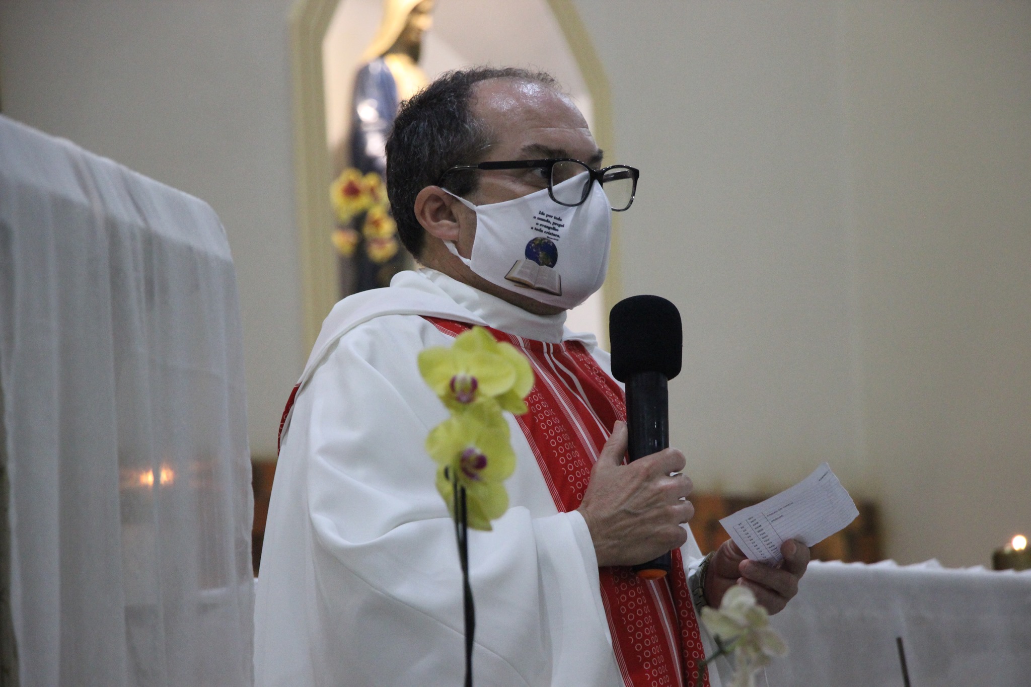 À noite, às 18h30, a novena foi iniciada e, na sequência, o Pe. Nilo Vicente presidiu a Celebração Eucarística dessa sétima noite do novenário, que teve como tema “Diálogo perseverante e corajoso“.