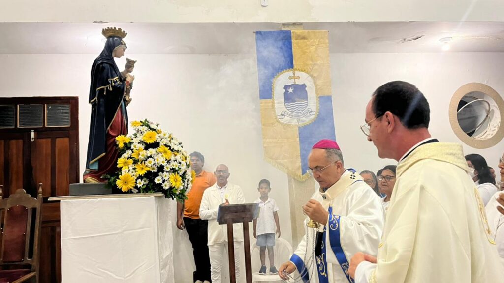A Santa Missa reuniu numerosos fiéis da Igreja Matriz e das comunidades da paróquia. Concelebrou o Pe. Joselito Oliveira Cruz, Administrador Paroquial, e serviu à liturgia o Diác. Luciano Lima Santana, Chanceler do Arcebispado.