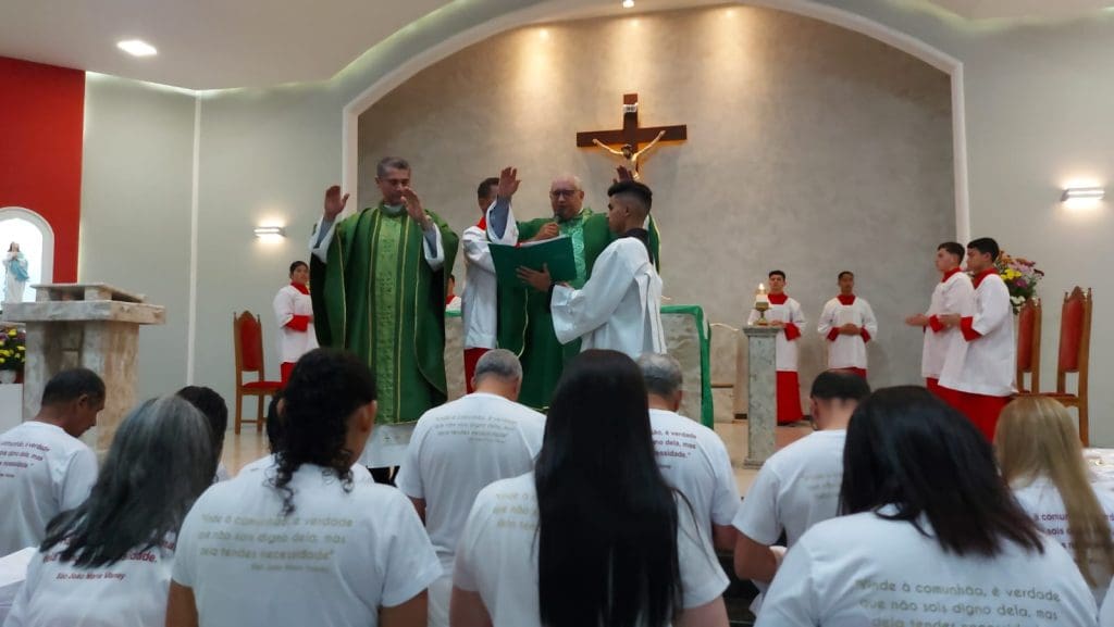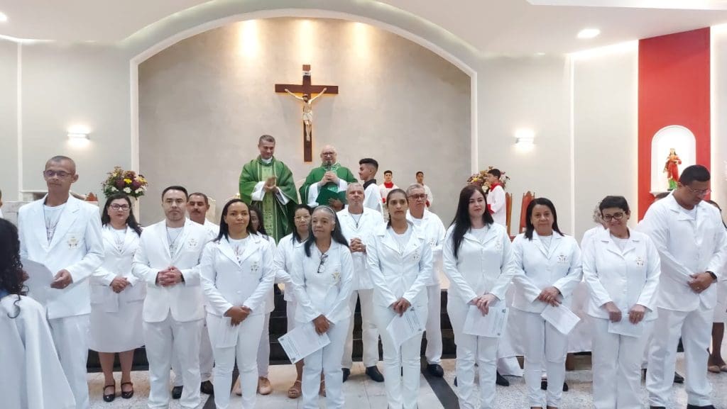 No último domingo, dia 10 de novembro, o Reverendíssimo Padre Gerson de Jesus Bittencourt, Administrador da Arquidiocese de Vitória da Conquista, presidiu a Santa Missa na qual foram investidos 38 novos Ministros Extraordinários da Sagrada Comunhão Eucarística da Paróquia Santa Luzia em Vitória da Conquista. O rito de investidura dos Ministros Extraordinários da Sagrada Comunhão ocorreu durante a Santa Missa das 18h00 na Igreja Matriz da Paróquia Santa Luzia conforme a Liturgia do 32º Domingo do Tempo Comum. A celebração eucarística presidida pelo Administrador Arquidiocesano, Pe. Gerson, foi concelebrada pelo Pároco, Pe. Reinaldo Reis Santos Lima, CSS.
