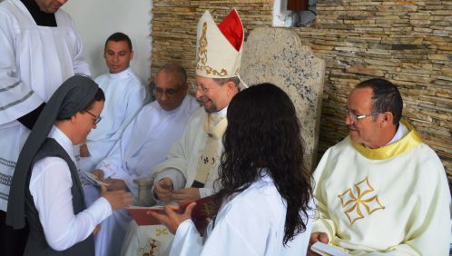 O primeiro dia do mês de maio deste ano de 2018 entrará para a memória viva dos fiéis maiquinenses. Pois nesta singular data a Ir. Vilma Lima Santos, emitiu seus Votos Perpétuos na Família das Irmãs do Santíssimo Sacramento (Sacramentinas). A Solenidade foi precedida por dias de missão, com a presença de inúmeras Irmãs Sacramentinas, de diversas regiões. A Santa Missa com o Rito da Profissão foi presidida pelo Arcebispo Metropolitano, Dom Luís Pepeu, na manhã dessa terça-feira, dia 1º, e foi concelebrada pelo Pe. Reinaldo Tarso, pároco, Pe. Gerson Bittencourt e o Pe. Ednilton Oliveira, que acompanhou a jovem Vilma no início do discernimento vocacional. Em sua saudação, o Arcebispo, se dirigiu a Superiora Regional das Sacramentinas, Ir. Cislene e, em sua pessoa às diversas religiosas presentes, bem como os visitantes de diversas cidades e familiares da Ir. Vilma. Na homilia, o Metropolita afirmou que “a religiosa é chamada a ser promotora do amor de Deus no mundo. Isso se dá através de sua entrega sem reservas a uma vida no Espírito Santo em profunda comunhão com Deus e suas coirmãs”. Antes da bênção final, o Pe. Ednilton fez um relato do acompanhamento vocacional da Ir. Vilma. A Professa, emocionada, externou suas congratulações aos presentes pela alegria vivenciada neste dia de júbilo e ação de graças. |