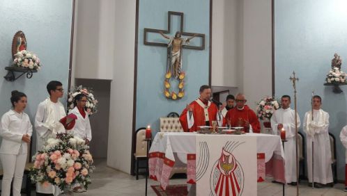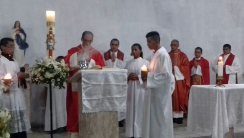 Na noite deste sábado, dia 19, Vigília de Pentecostes, o Arcebispo de Vitória da Conquista presidiu a Eucaristia na igreja matriz de Nossa Senhora de Guadalupe, sendo concelebrada pelo Pároco, Pe. Bebeto. Na ocasião, Dom Luís conferiu o sacramento da Crisma a um grupo de jovens e adultos das diversas comunidades urbanas e rurais da Paróquia. Na homilia, refletindo sobre a Liturgia da Palavra, o metropolita recordou a leitura da carta aos Romanos que “apresenta uma Igreja humilde, que não sabe rezar como convém, mas que o Espírito Santo derramado sobre seus corações lhe ensina a interceder”. Ainda dirigindo-se aos crismandos afirmou: “O dia em que nos crismamos é sem dúvida o dia de nosso Pentecostes. Onde o Espírito Santo nos é enviado para transformar e santificar”.