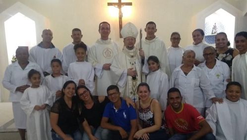 Na manhã deste domingo, dia 21, Dom Luís Pepeu, Arcebispo Metropolitano de Vitória da Conquista presidiu o terceiro dia da Novena em honra a São Judas Tadeu em Contagem-MG. Concelebraram a Eucaristia o Pároco, Pe. Arnon Gomes e o colaborador paroquial, Pe. Noel Novais, Reitor do Seminário de Teologia em terras mineiras. Participaram também da celebração os seminaristas Rafael e Danilo, que ali desempenham atividades pastorais nos fins de semana. Na homilia, Dom Luís recordou que neste domingo celebra-se o “Dia Mundial das Missões” e que “a própria festa do padroeiro São Judas Tadeu nos recorda o compromisso missionário, como urgência no dever de evangelizar, o que consiste num verdadeiro e constante processo de conversão”. Dia 18 – VISITA PASTORAL NA COMUNIDADE SÃO JOÃO BATISTA