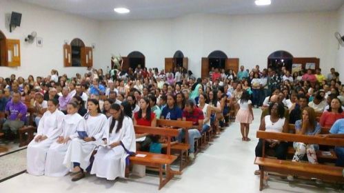 O Arcebispo Metropolitano Dom Luís Pepeu conferiu, às 18h de hoje, o Sacramento da Confirmação a um grupo de crismandos entre jovens e adultos na igreja matriz de Barra do Choça. A Missa foi concelebrada pelo Pároco Pe. Paulo Raimundo. Além dos catequistas, pais, padrinhos e parentes dos crismados participaram também da celebração muitos outros fiéis. Na homilia, Dom Luís se serviu dos textos bíblicos deste XXVIII Domingo do Tempo Comum e assegurou que “é preciso, muitas vezes, renunciar a certos valores perecíveis, a fim de adquirir os valores da vida verdadeira e eterna”. O Metropolita, dirigindo-se aos crismandos, recordou as palavras do Papa Francisco a: “prosseguirem no caminho que começaram com o Sacramento da Confirmação”. Dia 14 – DOM LUÍS PEPEU VISITA A COMUNIDADE SAGRADO CORAÇÃO DE JESUS NO BAIRRO SUMARÉ