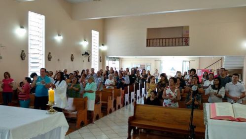 Na noite desta quarta-feira, dia 24, Dom Luís Pepeu visitou a Comunidade Mãe Rainha que faz parte da Paróquia Santa Luzia, sob o cuidado dos Padres Estigmatinos. A comunidade fica localizada no Condomínio das Acácias, no Miro Cairo, em Vitória da Conquista. Com esta, o Metropolita inicia a Visita Pastoral nessa Paróquia. Na homilia, Dom Luís à luz do subtema: “Com Maria, somos Igreja viva e participativa” recordou que “na sociedade civil, é indispensável a atuação dos cristãos leigos nas diversas organizações sociais e políticas. Do ponto de vista eclesial, como discípulos missionários, somos chamados a atuar para a edificação da comunidade, da Igreja, que é o Corpo de Cristo”.