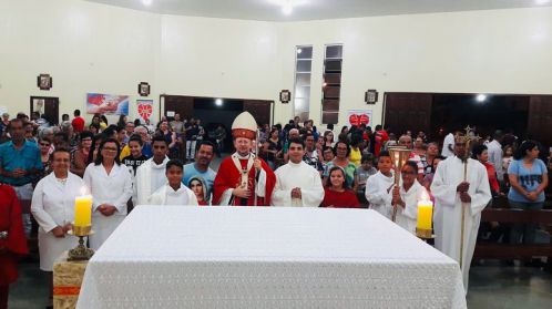 Às 10h Dom Luís chegou a Comunidade Santíssima Trindade, na ocasião presidiu a Santa Missa e abençoou a Capela.