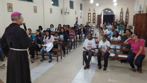 Enquanto o Arcebispo visitava as Comunidades Rurais, no Salão Paroquial Daniel Clemente, aconteceu o encontro com os Catequistas, orientado pela Coordenadora Arquidiocesana da Catequese, Elielma França;