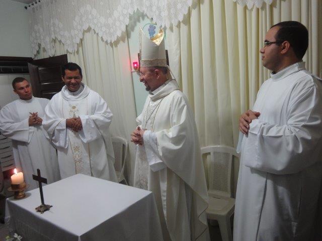 Na noite deste sábado (4), Dom Luís esteve em Caetanos a convite do Pároco Pe. Noel para presidir a Santa Missa de abertura do novenário em preparação à Festa do excelso padroeiro Santo Antônio de Pádua. As celebrações litúrgicas estão acontecendo já na nova Igreja, que está sendo erguida com muito esforço do Pe. Noel, contando sempre com a grande generosidade dos caetanenses. A Festa de Santo Antônio, no espírito da celebração do Jubileu da Misericórdia, tem como tema central: “Sede, pois, misericordiosos, como também vosso Pai é misericordioso” (Lc 6,36). Já o tema proposto para a meditação na abertura da Novena foi: “Em Jesus Cristo, encontramos uma porta aberta nos conduzindo à Misericórdia de Deus Pai”. Na homilia, Dom Luís destacou inicialmente a memória do Imaculado Coração de Maria celebrada na Igreja, sublinhando que o Coração de Maria é expressão inesgotável da misericórdia de Deus. Maria é a mulher que guarda no coração a Palavra de Deus, é morada do Espírito Santo, sede da sabedoria, imagem e modelo da Igreja que escuta e testemunha o Senhor. Refletindo sobre o tema específico desta primeira noite, após algumas referências sobre a imagem da “porta”, Dom Luís afirmou: “Abrir as portas é deixar Deus entrar e iluminar a nossa mente, abrir os nossos corações aos outros; olhar com os olhos de Deus, rico em misericórdia, o mundo em que vivemos, construímos e sonhamos”. Por fim, Dom Luís rogou que o Novenário e a Festa de Santo Antônio possam ajudar os fiéis e devotos do santo celebrado a uma atitude de conversão, uma vida nova, assumindo a vocação de batizados como um caminho de santidade, sendo “misericordiosos como o Pai”. Dentro da celebração, após as preces comunitárias e de acordo com o Cerimonial dos Bispos, Dom Luís abençoou a Capela do Santíssimo, construída ao lado do Presbitério. Feita a oração apropriada da bênção, o espaço sagrado foi incensado por Dom Luís. No final da Santa Missa, após a distribuição da sagrada comunhão aos fiéis, Dom Luís, ladeado pelos sacerdotes concelebrantes, e acompanhado dos ministros e coroinhas, conduziu as espécies que sobraram em uma píxide para a deposição no Tabernáculo (Sacrário). Neste momento, ele abençoou o novo Tabernáculo, depositando o Santíssimo Sacramento, incensando-o solenemente e fazendo um momento de oração em silêncio “versus Deum”. Retirou-se em seguida, voltando para o presbitério. Após a Santa Missa, o Arcebispo foi saudado por muitos fiéis em demonstração da grande alegria pela presença do Pastor em seu meio. Além do Pároco Pe. Noel e de Fr. Dimas, que concelebraram com Dom Luís, uma grande multidão de fiéis superlotou a nova Igreja. Esta primeira noite foi uma belíssima celebração, contando com a participação dos fiéis da cidade de Caetanos e de muitos que vieram das comunidades rurais, ainda que devendo enfrentar longas distâncias e vencer as dificuldades e asperezas dos caminhos. De fato, a presença de Dom Luís na Comunidade de Caetanos foi muito gratificante para todos e de grande motivação na caminhada de fé.