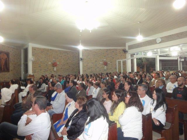 Na noite deste sábado (25), às 19h30min, Dom Luís celebrou a Santa Missa na Paróquia São José, em Itapetinga, onde conferiu o Sacramento da Crisma a um grupo de 100 pessoas, entre jovens e adultos, da Comunidade Paroquial. O pároco Pe. Rosenildo, em nome de todos os fiéis paroquianos, acolheu com grande alegria o Arcebispo, dando-lhe as boas-vindas. A Igreja São José estava repleta. A Comunidade compareceu em massa para participar da solene celebração e prestigiar este momento tão expressivo e de grande significado em sua caminhada eclesial, contando com a presença do Pastor em seu meio para confirmar na fé, mediante o sacramento da crisma, tantos jovens e adultos. Dom Luís dirigiu uma saudação ao Pe. Rosenildo, aos catequistas, equipes de coordenação e animação, aos diversos grupos de pastoral, aos movimentos e a todos os presentes, agradecendo a acolhida calorosa e tão fraterna. Em sua homilia, dirigindo-se aos crismandos, falou do compromisso decorrente deste sacramento. A crisma, ou sacramento da confirmação, é considerado o sacramento da maturidade porquanto aquele que o recebe deve estar preparado a comprometer-se com uma vivência autêntica de sua fé cristã e católica, assumindo com responsabilidade um efetivo engajamento na Comunidade Paroquial. Ser crismado implica uma atualização, um “aggiornamento” da vida nova recebida pelo batismo, pelo qual o cristão se torna discípulo missionário de Jesus Cristo, devendo assumir com toda a radicalidade este caminho de seguimento. Aquele que é crismado não pode ser uma pessoa “morna”, de fé inoperante, mas alguém que assume totalmente sua condição de membro vivo do corpo místico de Jesus, que é a Igreja. É preciso, portanto, um comprometimento concreto com a ação pastoral e evangelizadora da Igreja, mediante os diversos serviços e ministérios da comunidade, os grupos de trabalho que envolvem a ação pastoral e uma presença nos movimentos eclesiais, dando testemunho de uma fé autêntica em Jesus Cristo e em sua Igreja. A liturgia foi muito bem preparada e animada, contando com a participação de todos. No final da celebração, houve grande demonstração de uma alegria envolvente, contagiando a todos. Muitos fiéis foram ao encontro de Dom Luís para saudá-lo e agradecer-lhe por sua presença tão confortante, edificante e restauradora.