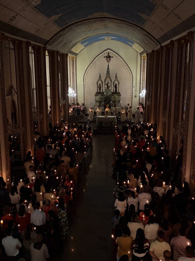 No noite do Sábado Santo, dia 04 de abril, foi celebrado na Catedral Metropolitana de Vitória da Conquista, a Vigília Pascal, uma das Celebrações mais importantes da Igreja. A Santa Missa reuniu fiéis de todas as comunidade paroquiais, que com profunda fé e alegria celebraram a Ressurreição de Jesus Cristo.