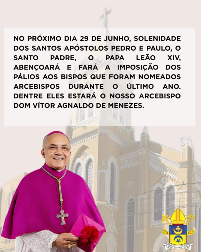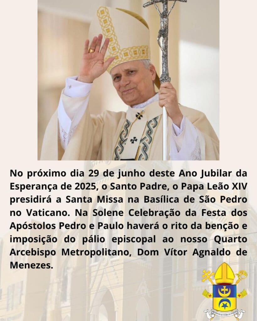 Neste Ano Santo do Jubileu de Esperança, a Arquidiocese de Vitória da Conquista acolherá o Arcebispo Metropolitano, Dom Vítor Agnaldo de Menezes, que apresentará o PÁLIO recebido das mãos do Santo Padre o Papa Leão XIV.