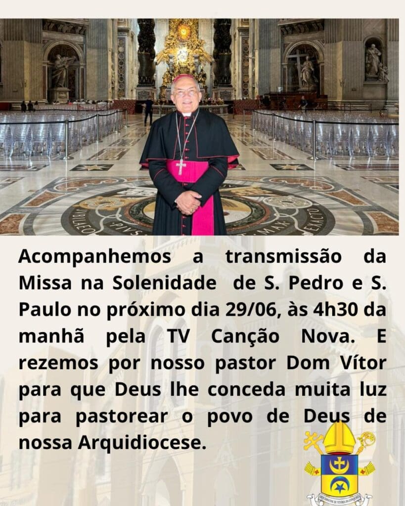 Todos são chamados a participarem da Celebração Eucarística, que ocorrerá no próximo dia 11 de julho, sexta-feira, às 19h, na Catedral Metropolitana Nossa Senhora das Vitórias. (Endereço: Praça Tancredo Neves, nº 181, Centro, Vitória da Conquista – BA, CEP: 45000-520).