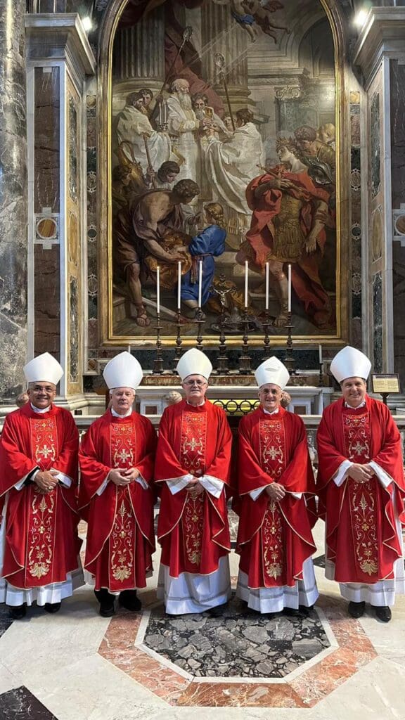 Além de Dom Vítor, outros cinco religiosos receberam o pálio, insígnia episcopal própria dos Arcebispos que simboliza a união direta com o Papa e o compromisso pastoral com sua província eclesiástica.