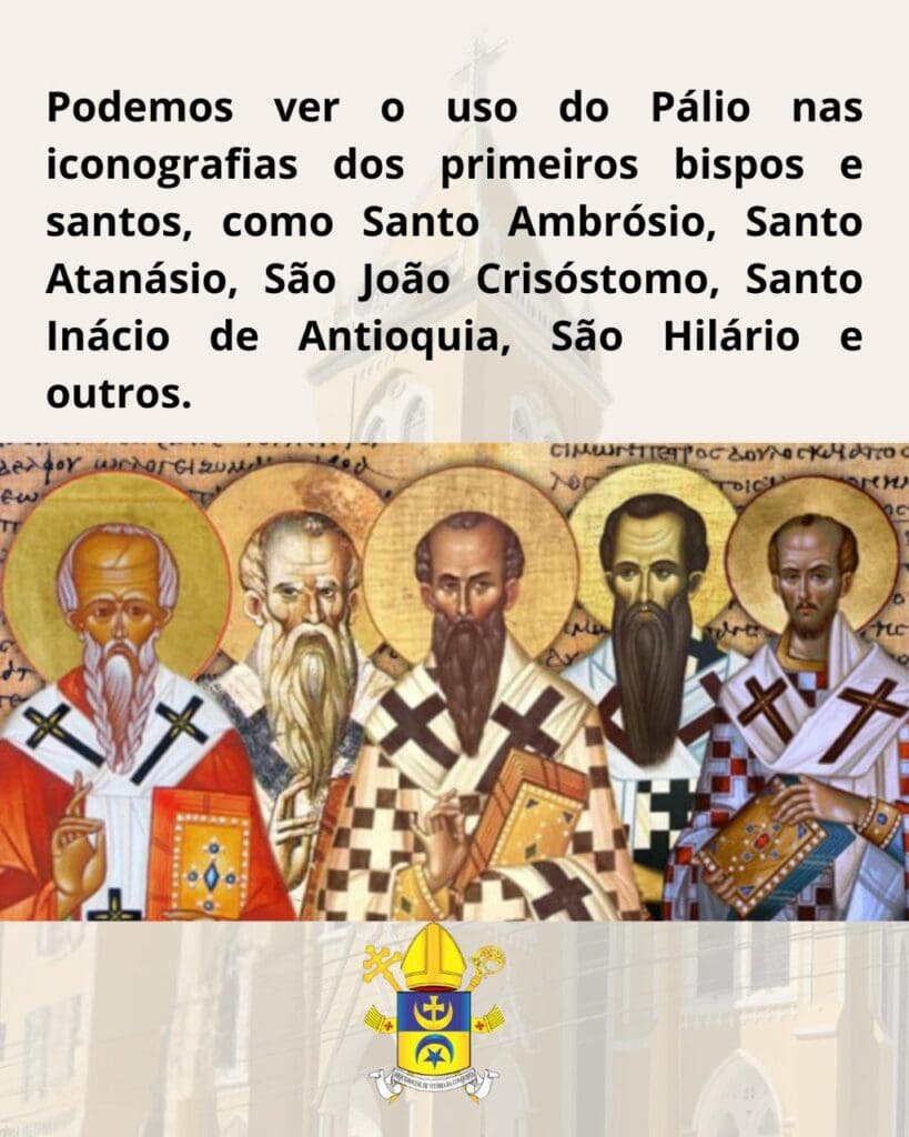 O pálio tem origem no manto usado por filósofos e aparece na arte paleocristã vestindo Jesus e os apóstolos. Foi adotado pela Igreja com função semelhante ao omoforion das tradições orientais. Inicialmente, era uma tira de pano enrolada nos ombros, usada por todos os bispos, como mostram ícones de santos como Santo Ambrósio e São João Crisóstomo. O primeiro registro de sua concessão formal é de 513, quando o Papa Simmaco o entregou a São Cesário de Arles. No século IX, ganhou o formato atual de “Y”, passando a ser exclusivo dos arcebispos metropolitanos. Em ocasiões especiais, como no Jubileu de 2000, o Papa João Paulo II utilizou um modelo semelhante ao antigo omoforion.