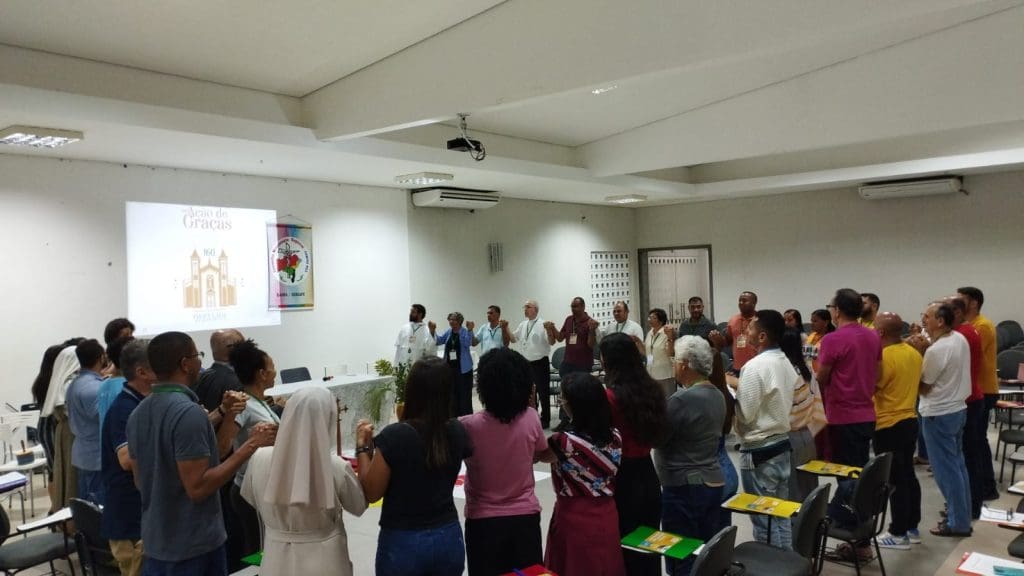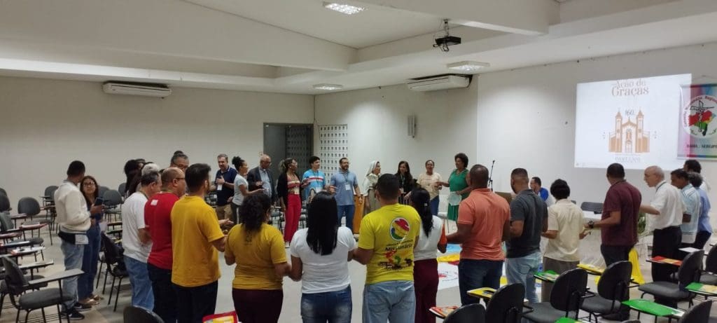 Entre os dias 27 e 29 de setembro, aconteceu a Assembleia Geral do COMIRE (Conselho Missionário Regional) e das POM (Pontifícias Obras Missionárias) do Regional Nordeste III, realizada na Casa de Formação Dom Itamar Viana, na cidade de Feira de Santana – BA. Participaram desse evento, como representantes de nossa Arquidiocese, o Pe. Eugênio Santos Gonçalves, Assistente Eclesiástico da COMIDI (Comissão Missionária Diocesana) e Tânia Chaves, Coordenadora da Infância Missionária. A Assessora do encontro foi a Irmã Eliane, abordando o tema “a Igreja é para a Evangelização”.
