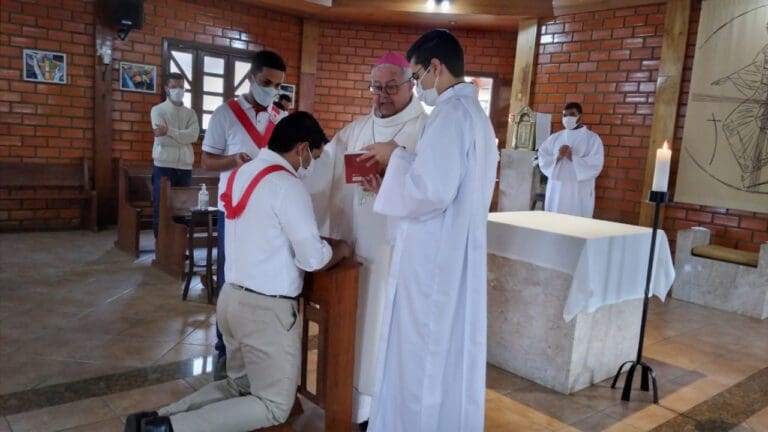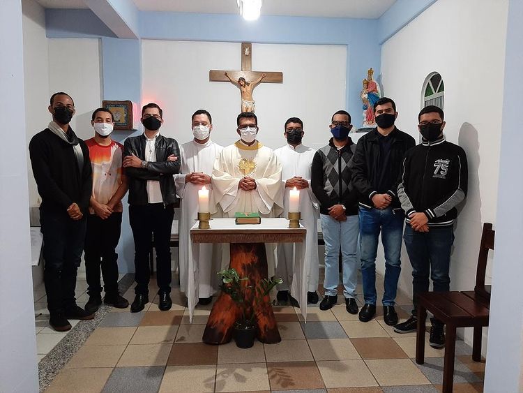 Missa de encerramento da etapa Propedêutica dos Seminaristas Álife, Eric e Gustavo Na noite dessa quinta-feira, 3 de dezembro, foi Celebrada a Santa Missa de encerramento da etapa Propedêutica dos Seminaristas: 3 de dezembro de 2020