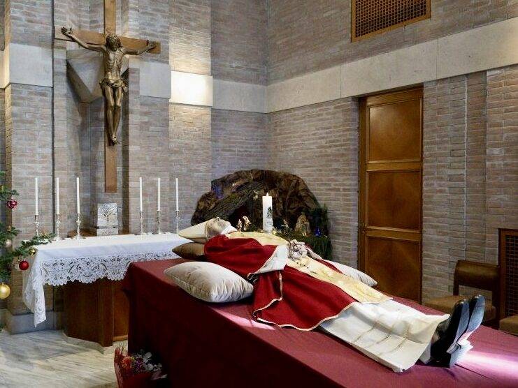 Notícias importantes da morte e do sepultamento do Papa Bento XVI Desde o momento da morte, às 9h34, do dia 31 de dezembro, o féretro foi colocado na capela do 2 de janeiro de 2023