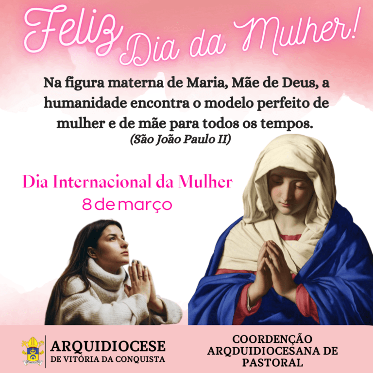 Arquidiocese de Vitória da Conquista parabeniza todas as mulheres pelo Dia Internacional da Mulher Na figura materna de Maria, Mãe de Deus, a humanidade encontra o modelo perfeito de mulher e de mãe 8 de março de 2023