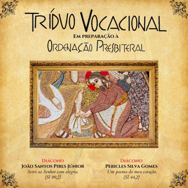 Aproxima-se o Tríduo Vocacional em preparação para a Ordenação Presbiteral dos Diáconos João Santos e Pericles Silva Está se aproximando a Ordenação Presbiteral dos Diáconos João Santos Pires Júnior e Pericles Silva Gomes, que acontecerá no 18 de janeiro de 2024