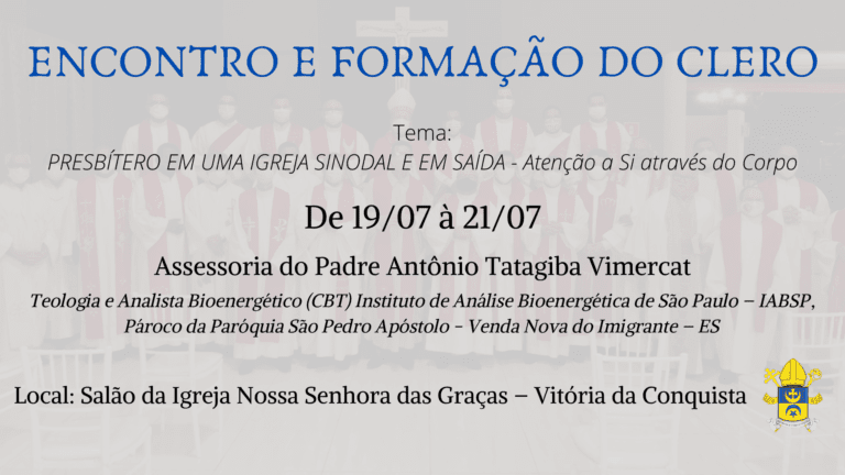 ENCONTRO E FORMAÇÃO DO CLERO Hoje, na Paróquia Nossa Senhora das Graças, em Vitória da Conquista, se inicia o Encontro e Formação com o 19 de julho de 2022