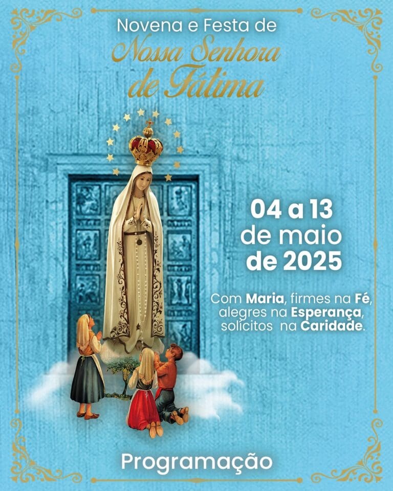 Novena e Festa de Nossa Senhora de Fátima 2025 A Paróquia Nossa Senhora de Fátima de Vitória da Conquista realizará nos dias 04 a 13 de maio, o 2 de maio de 2025