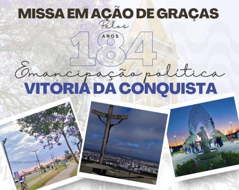 Missa em Ação de Graças pelo aniversário de Vitória da Conquista será celebrada no dia 9 de Novembro Como parte das comemorações do aniversário de 184 anos de Emancipação Política do município de Vitória da Conquista, será 5 de novembro de 2024