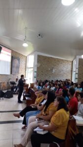 A Jornada Bíblico Vocacional aconteceu na tarde de sábado com uma programação voltada para momentos de acolhida, oração, convivência e celebração. O Pe. Nailson Gonçalves, Reitor do Seminário Arquidiocesano Nossa Senhora das Vitórias, assessorou sobre o tema do Ano Vocacional Arquidiocesano: “O Senhor te chama: você é uma missão” e o lema: “Eis-me aqui, envia-me” (Is 6,8). O Pe. Sergio Steban, Religioso Estigmatino e Colaborador na Paróquia Santa Luzia, abordou sobre o conteúdo do seu segundo livro EcoCatequese. A obra “Ecocatequese” aborda a questão da relação da fé cristã e o cuidado com a criação.