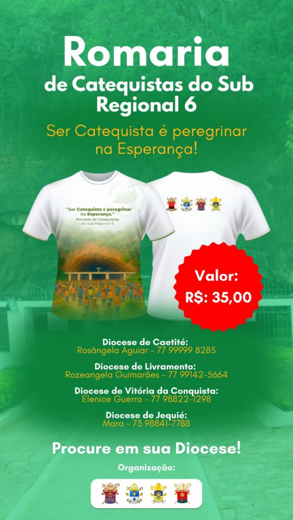 A Comissão Bíblico Catequética de Iniciação à Vida Cristã de nossa Arquidiocese, está divulgando o link de inscrição para os catequistas participarem da Romaria dos Catequistas da Sub Região 06 a Gruta da Mangabeira, em Ituaçu, onde está localizado o Santuário do Sagrado Coração de Jesus.