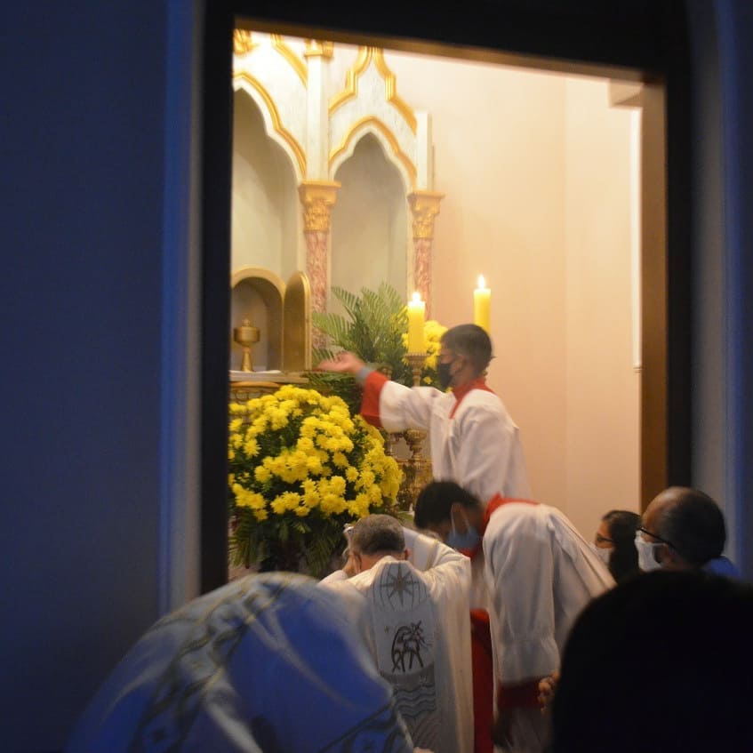 Terminada a Santa Eucaristia, Jesus Eucarístico foi transladado para simbolizar a retirada de Jesus Cristo para o Getsêmani e o início do seu sofrimento.