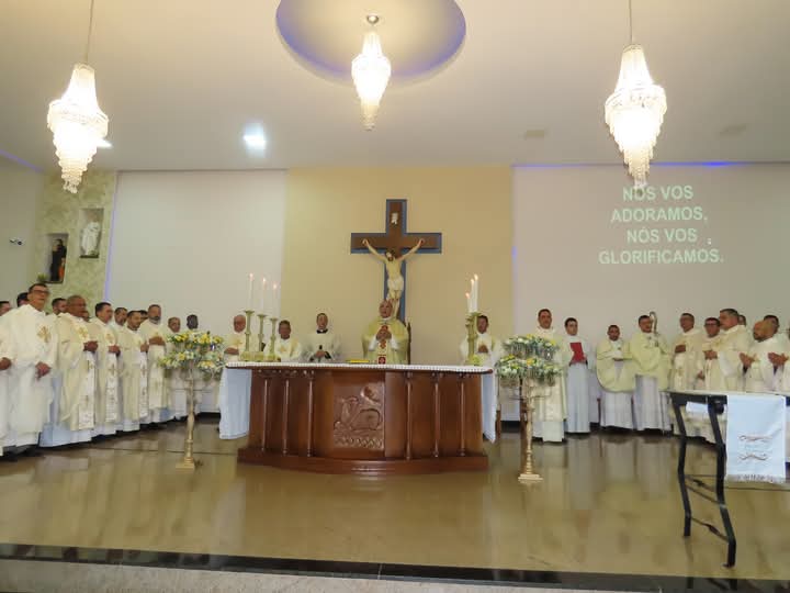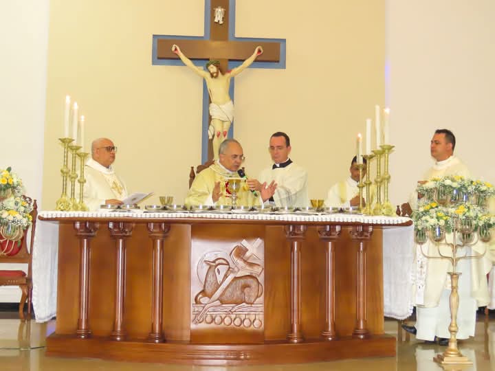 Em um clima de profunda fé e unidade, a Arquidiocese de Vitória da Conquista celebrou, às 16h desta Terça-feira Santa, a Missa da Unidade. A Paróquia Nossa Senhora Rainha da Paz e São Vicente de Paulo foi a Igreja escolhida para esta significativa celebração, que reuniu os Padres do clero arquidiocesano, Diáconos, Religiosos, Religiosas, seminaristas, além de um expressivo número de fiéis.