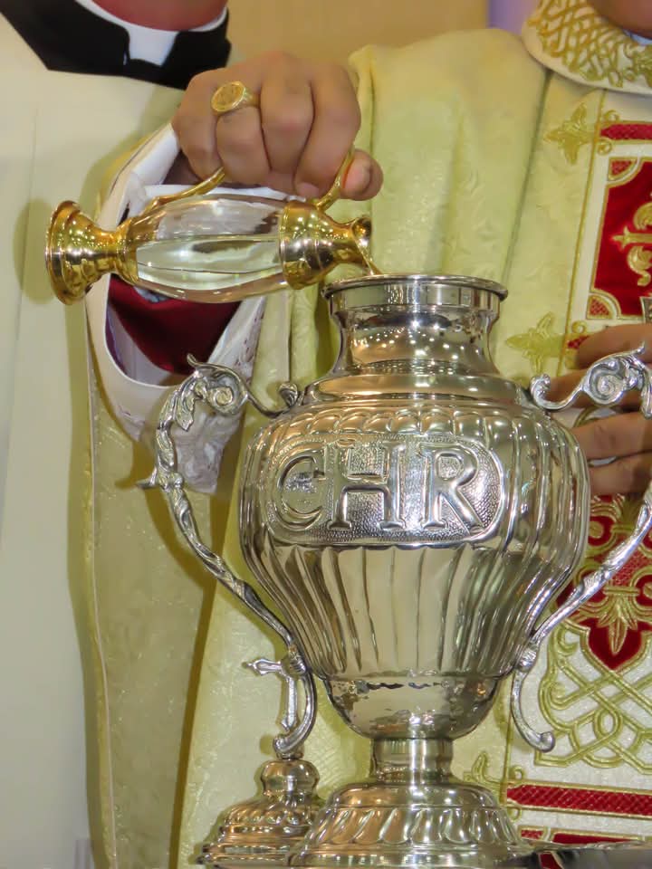 O Santo Crisma: Este óleo é utilizado no Sacramento do Batismo (após a água), na Crisma (ou Confirmação), na unção das mãos dos Presbíteros e da cabeça dos Bispos na ordenação, e na unção de igrejas e altares na dedicação. O Santo Crisma simboliza a plenitude do Espírito Santo, a consagração e a incorporação a Cristo, ungido sacerdote, profeta e rei.