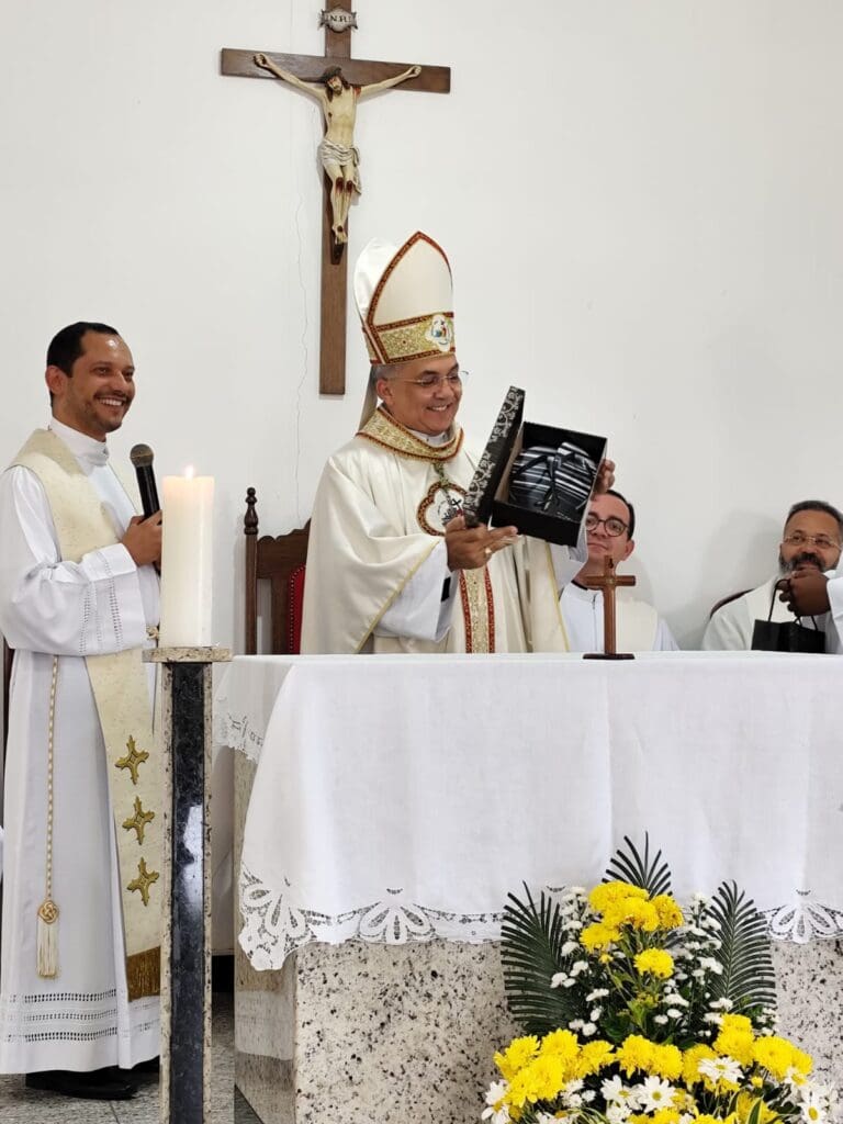 Dom Vítor presidiu na noite de segunda-feira, 09 de junho, a Celebração Eucarística na Paróquia Santo Antônio, município de Mirante, pertencente à Diocese de Jequié. O Pároco, Pe. Paulo Silva concelebrou. Uma multidão de fiéis estiveram presentes na noite do Novenário em preparação a festa do seu padroeiro.