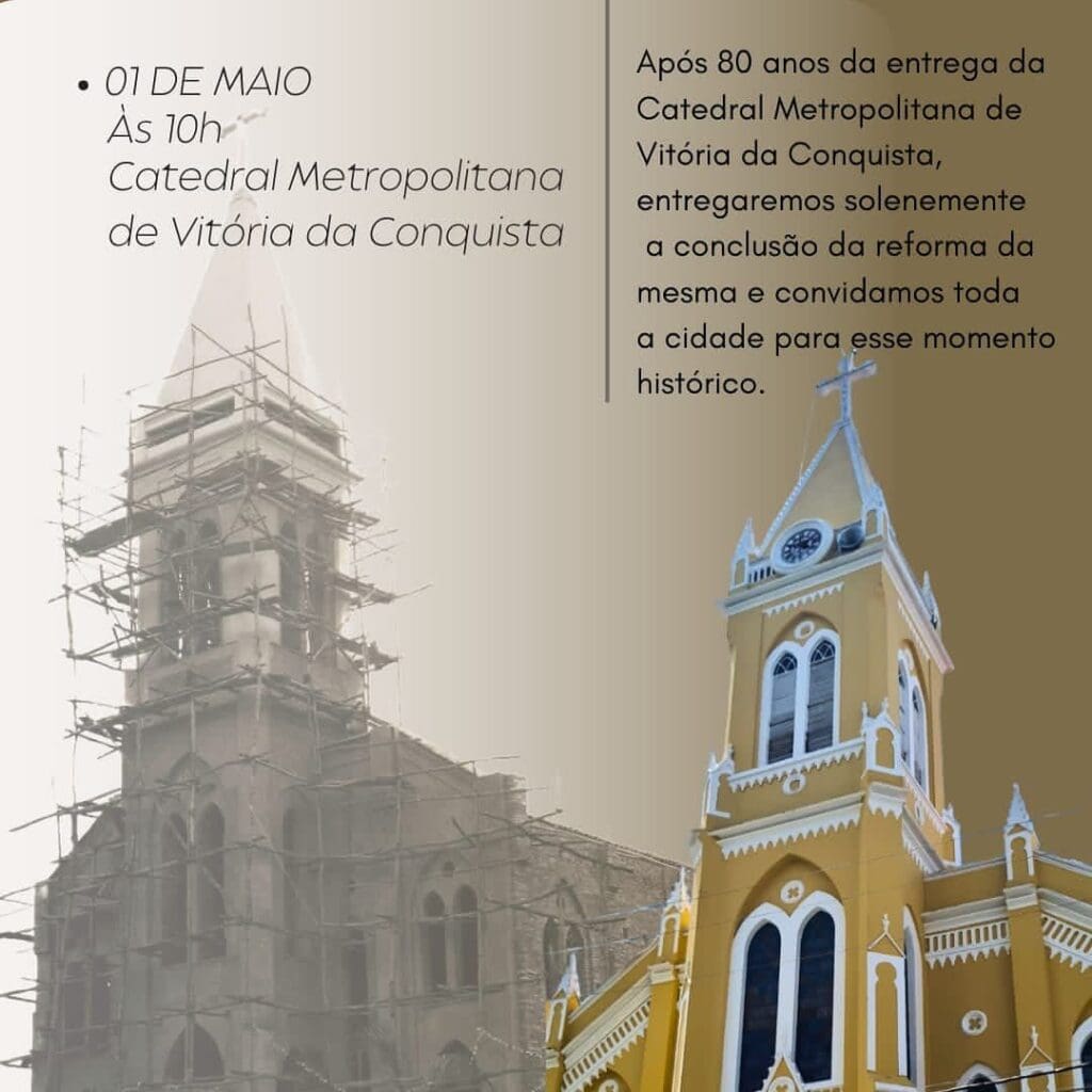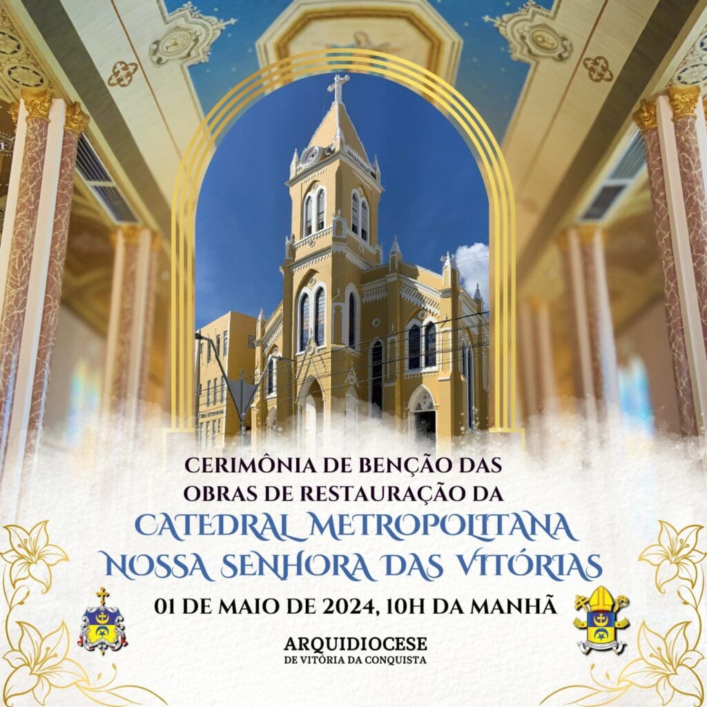 A Celebração Eucarística na qual haverá a benção das obras de restauração da Catedral deve contar com a presença de Bispos, incluindo o Arcebispo Emérito de Vitória da Conquista, Dom Luís Gonzaga Silva Pepeu, OFMCap, Presbíteros, Diáconos, Religiosos, Religiosas e fiéis leigos da Arquidiocese de Vitória da Conquista. A Santa Missa será presidida pelo Administrador Apostólico, Dom Josafá Menezes da Silva, às 10h00, do dia 01 de maio e será aberta a toda comunidade. Que Nossa Senhora das Vitórias, Excelsa Padroeira da Arquidiocese de Vitória da Conquista, interceda ao Seu Divino Filho, Jesus Cristo, graças e bênçãos sobre todas as pessoas que contribuíram com as obras de revitalização e restauro da Catedral Metropolitana.