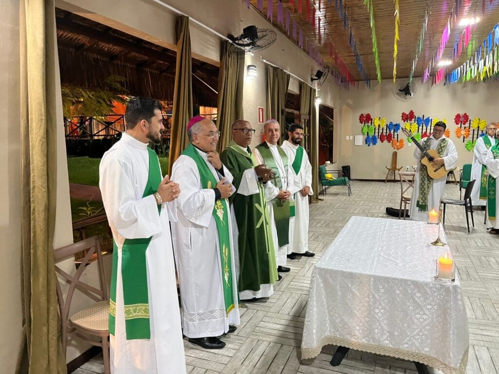 De 21 a 24 de julho, o Clero da Arquidiocese de Vitória da Conquista realizou o Retiro Anual do Clero no resort Pedra Bonita, na cidade de Santo Estêvão (BA). O encontro reuniu Presbíteros e Diáconos transitórios, e contou com a presença do Arcebispo Metropolitano, Dom Vítor Agnaldo de Menezes.