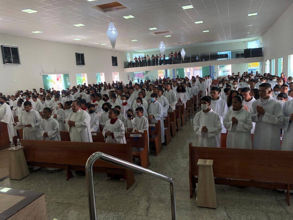Foi uma manhã de riqueza espiritual e de reencontros. Estiveram presentes no encontro mais de 500 coroinhas das diversas paróquias do Vicariato São Lucas. A programação contou com momentos de louvor, uma palestra conduzida pelo Pe. Frenilson da Conceição e finalizou com a Santa Missa presidida pelo Pe. Rafael Alves, Assessor Eclesiástico da Pastoral dos Coroinhas da Arquidiocese e do Vicariato São Lucas.