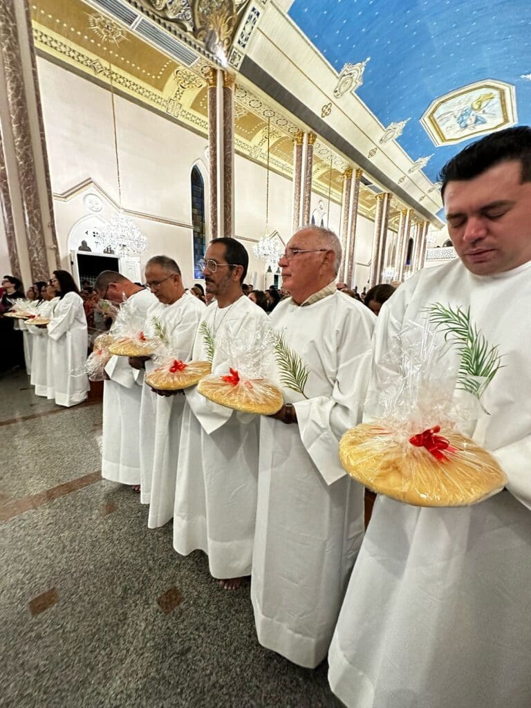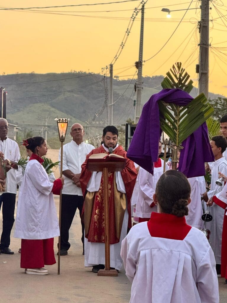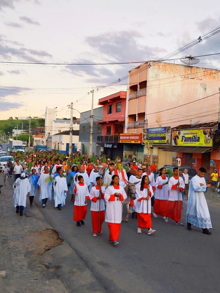 O Domingo de Ramos, celebrado no último domingo, dia 13 de abril, abriu solenemente a Semana Santa. As celebrações foram marcadas pela tradicional bênção dos ramos de oliveira e palmeira, que simbolizam a aclamação de Jesus como Rei e Messias. Procissões percorreram as ruas, recordando a entrada triunfal de Jesus em Jerusalém, montado em um jumento e aclamado pela multidão que estendia seus mantos e ramos pelo caminho.
