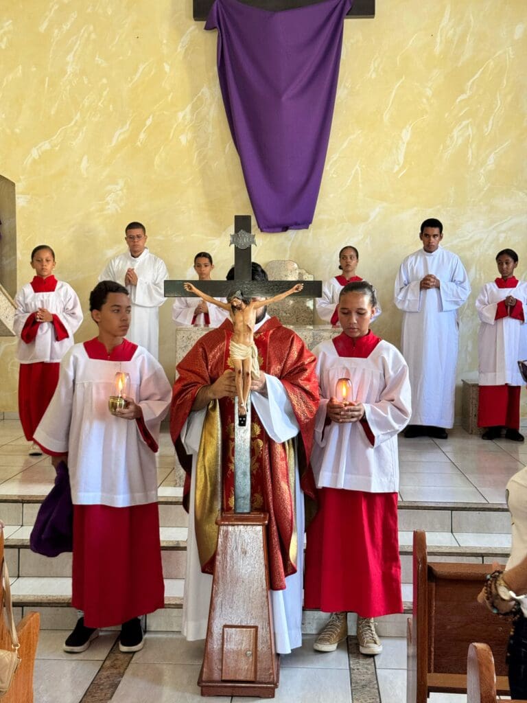 A Sexta-feira Santa foi um dia de profunda reflexão e penitência. As celebrações litúrgicas centraram-se na Paixão e Morte de Jesus, com a leitura do Evangelho de São João, a veneração da Santa Cruz e a oração universal. Muitas Paróquias realizaram a tradicional Via Sacra, meditando sobre os passos de Jesus a caminho do Calvário. O silêncio e a sobriedade marcaram este dia de contemplação do sacrifício redentor de Cristo.