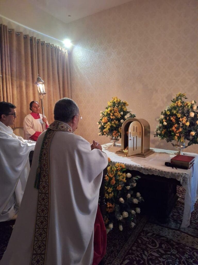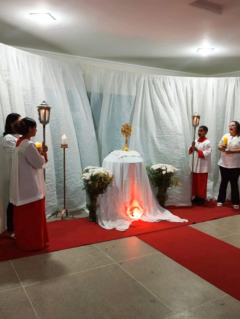 Na Quinta-feira Santa, as Paróquias celebraram a Missa da Ceia do Senhor, recordando a Última Ceia de Jesus com seus Discípulos, a instituição da Eucaristia (“Isto é o meu corpo… Este é o cálice do meu sangue…”), do Sacramento da Ordem, e a recordação do lava-pés, gesto de humildade e serviço de Nosso Senhor. As igrejas também permaneceram abertas para a adoração ao Santíssimo Sacramento, recordando a agonia de Jesus no Getsêmani.
