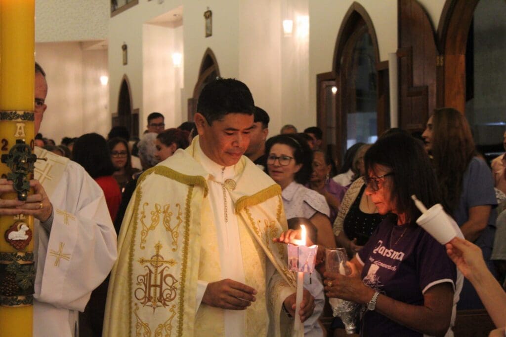 O Sábado Santo foi marcado pela solene Vigília Pascal. Iniciada na escuridão, com a bênção do fogo novo e do Círio Pascal, a liturgia segue com a proclamação da Páscoa, a leitura de passagens do Antigo e do Novo Testamento que rememoram a história da salvação, a renovação das promessas batismais e culminou na celebração da Eucaristia, a primeira após a Ressurreição de Jesus. O toque festivo dos sinos e as luzes acesas simbolizaram a vitória de Cristo sobre a morte e a esperança renovada para a humanidade.