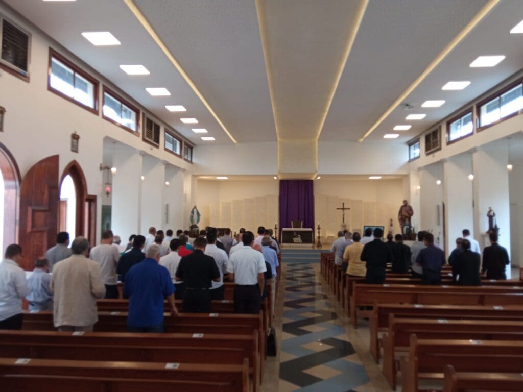 Logo pela manhã, por volta de 8h30 da segunda feira (29/04), Dom Vítor Agnaldo de Menezes, acompanhado do Pe. Lucas da Conceição Sousa, Chanceler do Arcebispado, visitou, pela primeira vez, a residência dos missionários consagrados da Comunidade Católica Shalom. Este momento permitiu que o prelado conhecesse o local e ouvisse sobre as atividades da Comunidade em Vitória da Conquista.