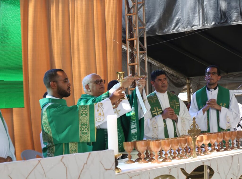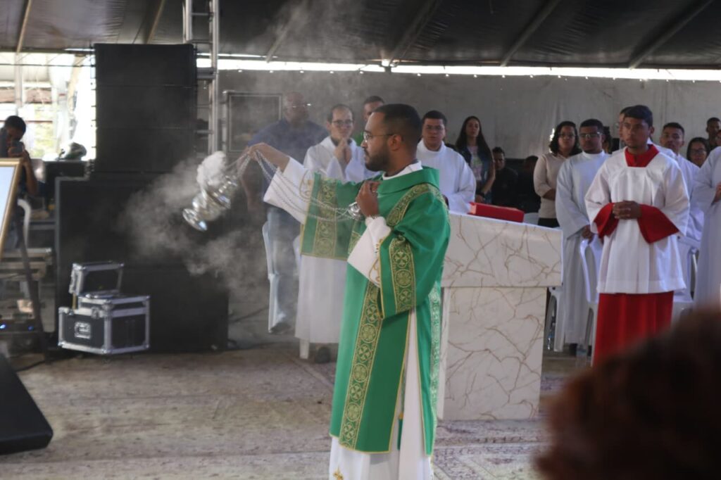 A Celebração Eucarística, ponto alto do encontro, foi presidida pelo Mons. Gerson de Jesus Bittencourt, Vigário Geral da Arquidiocese, e concelebrada pelos Padres: Pe. Luan de Jesus (Vice-Reitor do Seminário Propedêutico, em Itapetinga), Pe. Nailson Gonçalves (Reitor do Seminário Propedêutico, em Itapetinga), Pe. Geneildo Lima (Pároco da Paróquia Nossa Senhora Rainha da Paz e São Vicente de Paulo), Pe. Wanderson Aminaddab (Administrador Paroquial da Paróquia Sagrado Coração de Jesus), Pe. Frenilson da Conceição (Pároco da Paróquia Nossa Senhora das Graças), Pe. Edmilson José dos Santos (Reitor do Seminário de Filosofia, em Vitória da Conquista), além da participação do Diácono Juliano Campos (Assistente Eclesiástico da Pastoral da Comunicação).