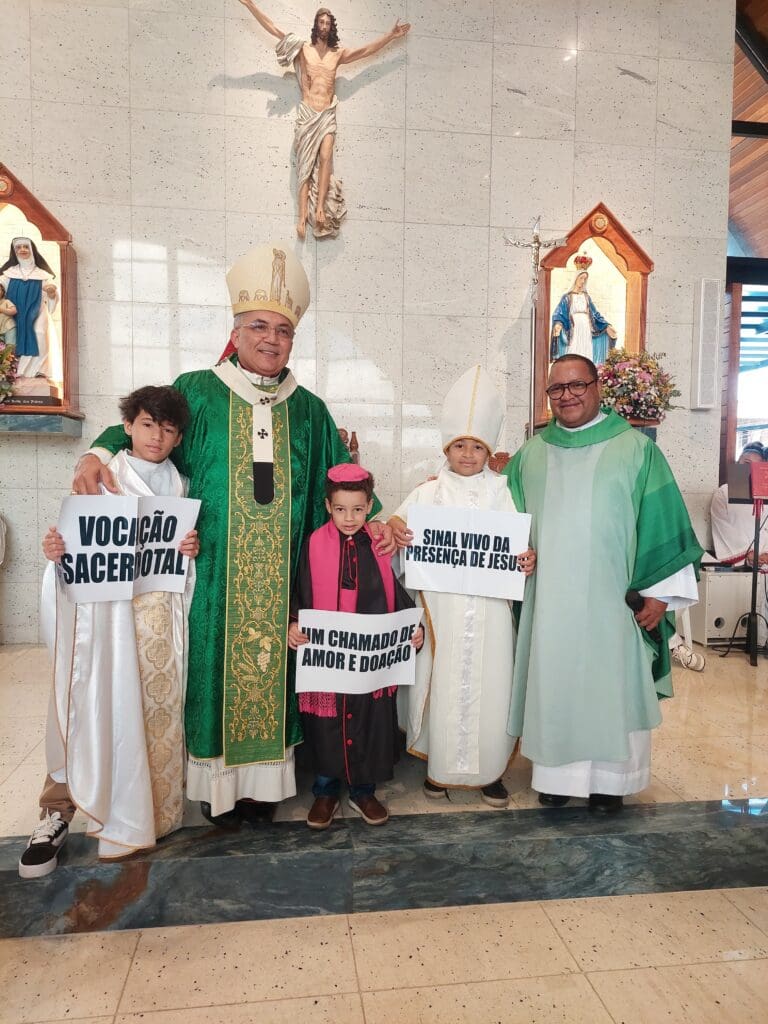 Ao final da Celebração, a comunidade preparou uma apresentação especial em homenagem às vocações ministeriais — Bispos, Padres e Diáconos — recordando que o primeiro domingo de agosto é dedicado à oração pelos ministros ordenados. O gesto, marcado pela gratidão e reconhecimento, emocionou os presentes e expressou o carinho da comunidade para com aqueles que consagraram suas vidas ao serviço da Igreja.