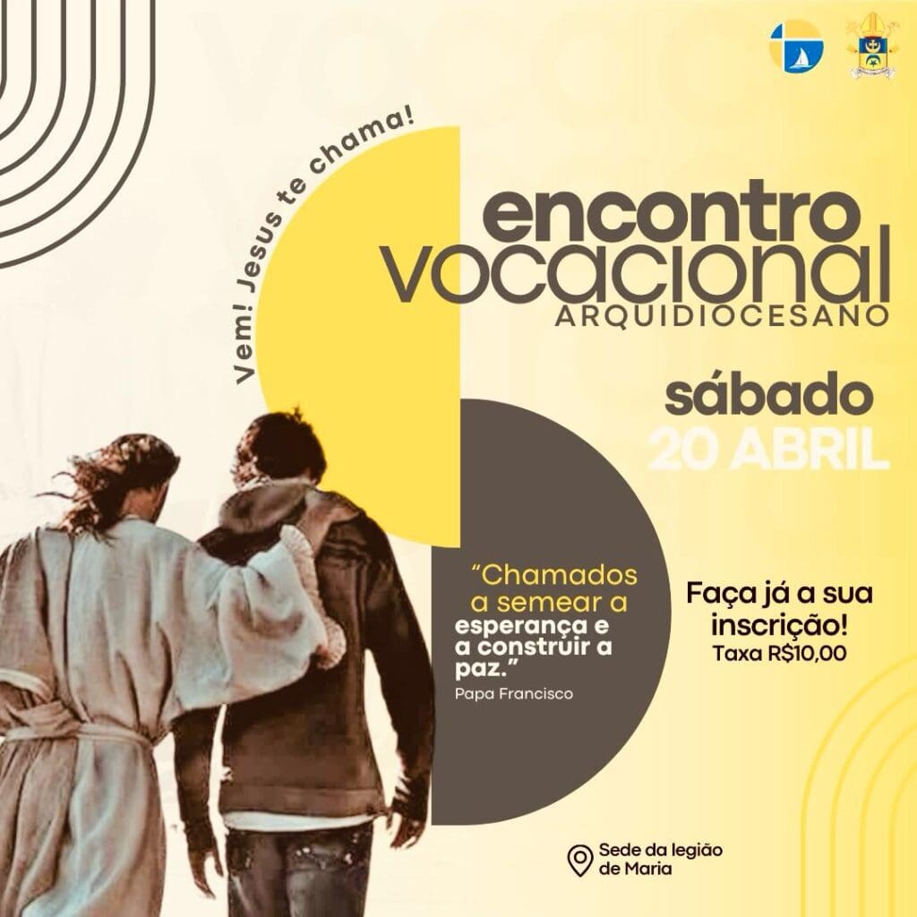 No próximo dia 20 de abril acontecerá o I Encontro Vocacional Arquidiocesano de 2024 na Sede da Legião de Maria, na cidade de Vitória da Conquista. Este será um momento propício para que os jovens possam se encontrar, conviver, rezar e juntos darem início a um processo de discernimento vocacional, a fim de melhor compreenderem para qual missão Nosso Senhor Jesus Cristo, o Senhor da Messe, os convida.