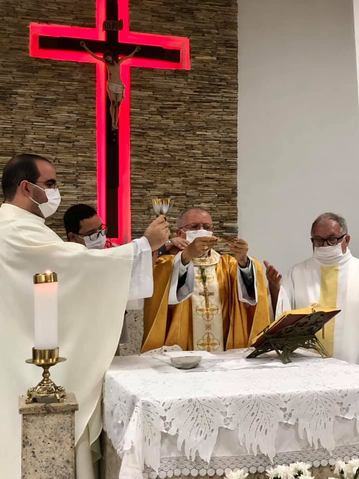 A Celebração foi presidida por Dom Josafá Menezes, Arcebispo Metropolitano, o qual e teve por concelebrantes o Pe. José Vasconcelos e o Pe. Técio Andrade, e também contou com a presença do Seminarista Lucas, que está em estágio pastoral.