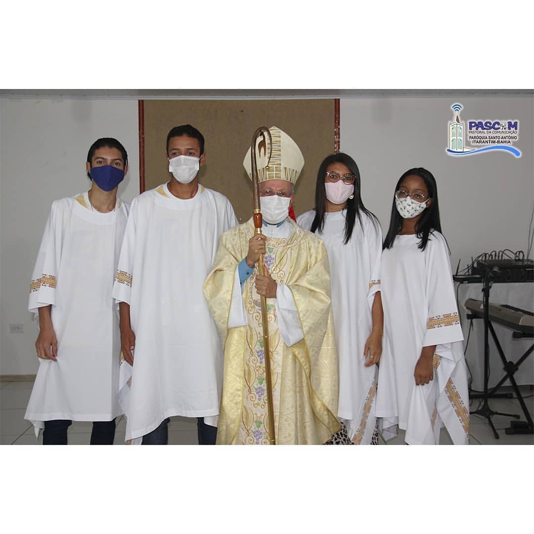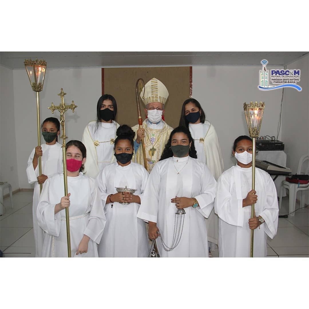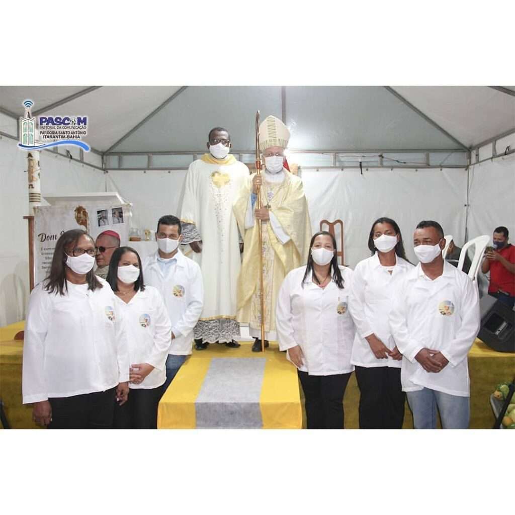 Ao término da homilia, os seis novos ministros foram instituídos para ajudarem o Pároco na missão de visitar os doentes e distribuir a Sagrada Comunhão Eucarística.