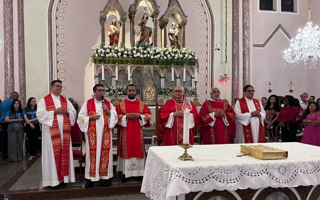 A Celebração foi presidida pelo Mons. Gerson de Jesus Bittencourt (Vigário Geral da Arquidiocese) e concelebrada pelos Padres: Irineu Moreira Meira (Pároco), Wanderson Aminadab Barros Oliveira (Administrador Paroquial da Paróquia Sagrado Coração de Jesus), Joselito Oliveira Cruz (Administrador Paroquial da Paroquia Nossa Senhora do Perpétuo Socorro, em Iguaí). Serviu a liturgia o Diác. José Dias do Nascimento, Colaborador na Paróquia Nossa Senhora das Vitórias e o Diác. Transitório, Juliano Neres de Campos, Assistente Eclesiástico da Pastoral da Comunicação.