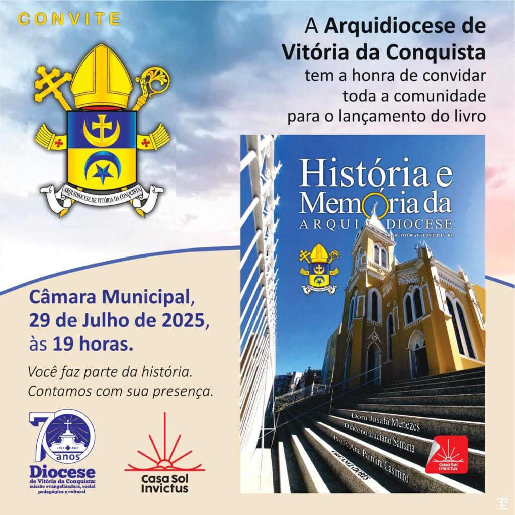 O livro “História e Memória da Arquidiocese de Vitória da Conquista” será lançado no dia 29 de julho, às 19h, na Câmara Municipal de Vereadores. A publicação marca as comemorações dos 70 anos de criação da Diocese e dos 25 anos da Província Eclesiástica de Vitória da Conquista.