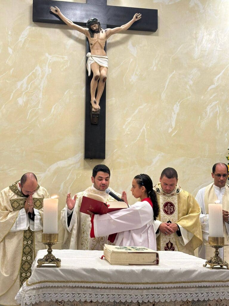A celebração da Santa Missa, que aconteceu às 18h30, foi presidida pelo Padre Fillipe, Administrador Paroquial, concelebrada pelos Padres Adson, Eugênio e os seguintes Padres: Nailson, Pericles, Lucas Pereira, Antônio Gonçalves, Luiz Cláudio, Edmilson, João Santos e Wagner Chaves.